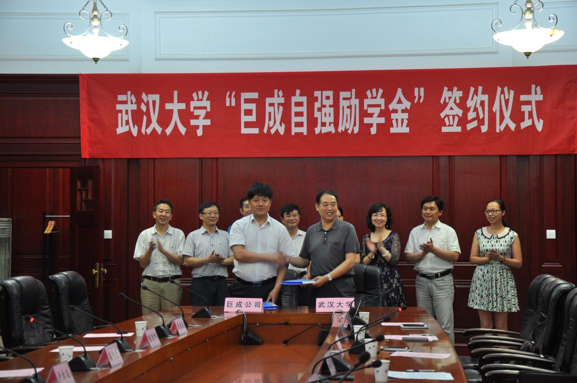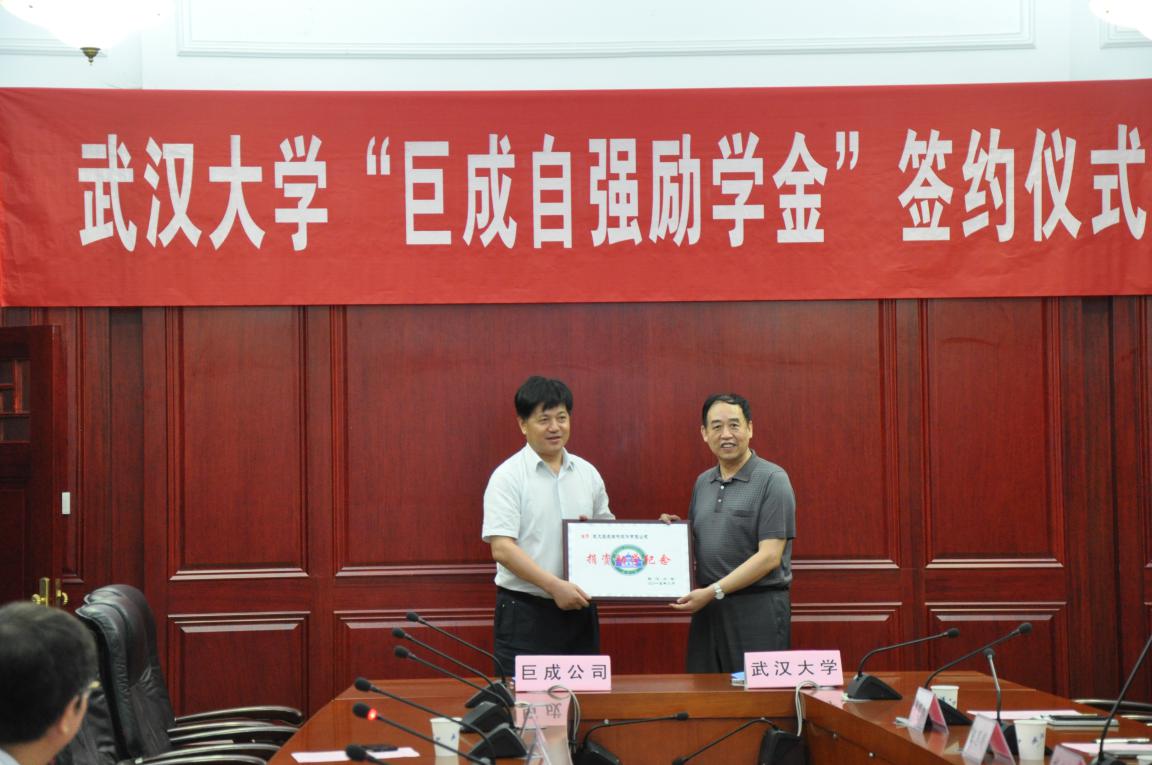 在捐赠仪式上,我公司董事长高作平教授作了题为《捐资励学是巨成永恒的社会义务》的讲话,简要介绍了巨成的发展历程以及与武汉大学的历史渊源,强调巨成源于大学,也必将反哺大学,捐资励学将是巨成永恒的义务。武汉大学副校长、党委副书记王传中在捐赠仪式上讲话,对高作平教授及巨成的捐资励学的义举表示钦佩,号召武大的学子们要以高作平教授及巨成为榜样,努力学习,早日成材,早日为社会作贡献。