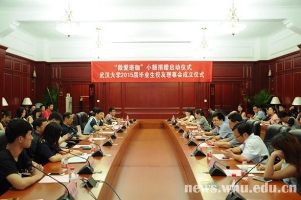 2015年6月25日,武汉大学“微爱珞珈”小额捐赠正式启动,校友可通过支付宝和微信方便快捷地捐赠,关爱家庭经济困难学子。