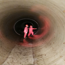 年度例行停水检修工作于12月8日开始,计划于12月28日恢复通水。本次修复加固工作的难点在于:一、甲方边检查边对管道进行安全性评级,逐步确定施工工程量,这对我方调配施工人员、材料、机械,以及对施工质量的控制、安全管理提出了几乎严苛的要求,要求我方必须及时反应,闪电启动,迅速发力;二、施工条件特别艰苦,全部施工人员及机械通过直径仅800MM的检修井输送到管道内,而且通风条件极差;三、本次修复加固工作量巨大,并且随着甲方检测工作的推进,工作量不断增加,这要求我公司的应急处理措施必须随时调整;四、项目地点分布在20KM的范围内,如何保证各个点的施工质量和人员安全成了一个大难题。
