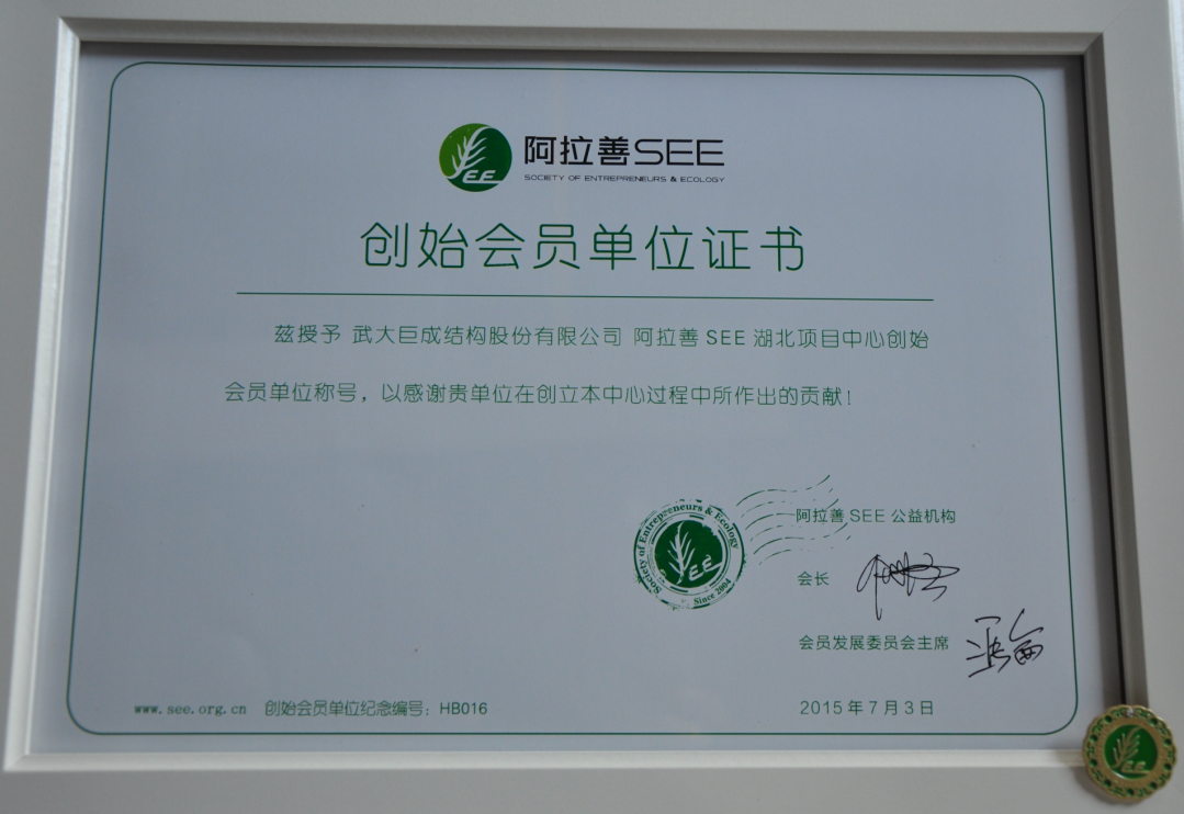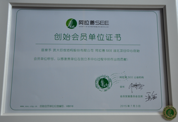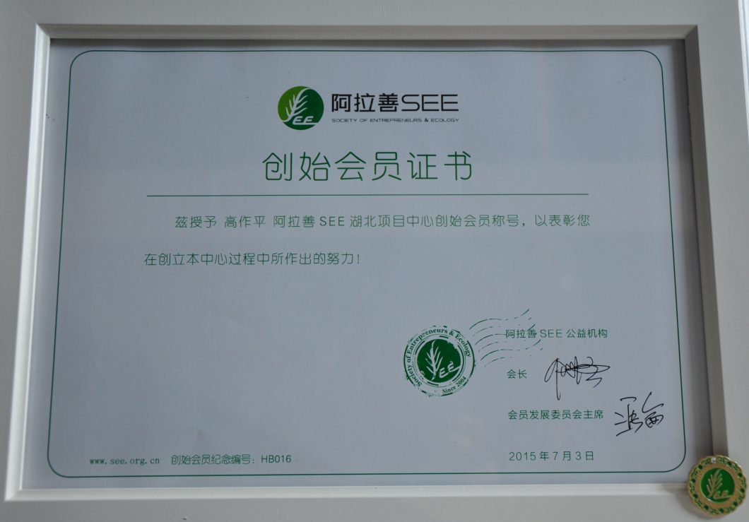 我公司董事长高作平也参加了本次活动,并成为阿拉善湖北项目中心创始会员,我公司成为阿拉善湖北中心创始会员单位。