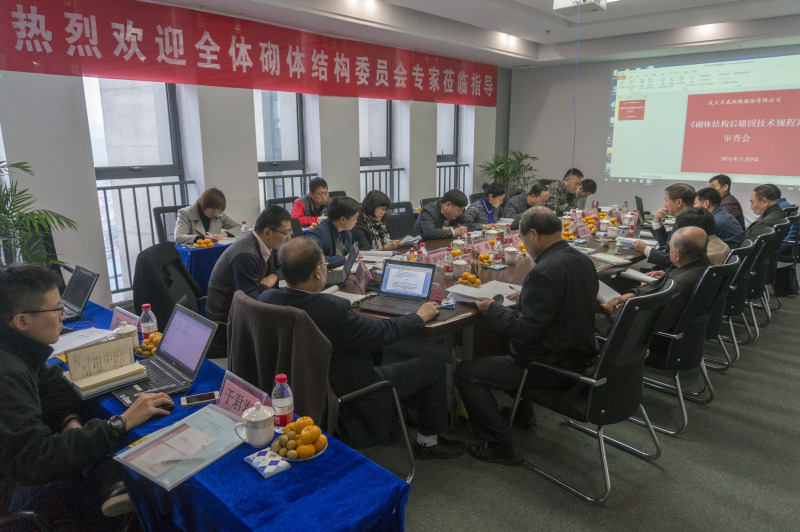 2016年11月8日-10日 ,由中国建筑东北设计研究院有限公司、武大巨成结构股份有限公司、沈阳建大工程检测咨询有限公司为主编单位并会同沈阳建筑大学、陕西省建筑科学研究院、贵州开磷建设总公司、陕西省建筑科学研究院、四川省建筑科学研究院、重庆建筑科学研究院、湖南大学、沈阳建筑大学、西安交通大学、辽宁省预拌砂浆行业协会、武汉理工大学、沈阳市依力达建筑外加剂厂、喜利得(上海)有限公司、慧鱼(太仓)建筑锚栓有限公司、美坚利(北京)科技发展有限公司、广西壮族自治区墙改办、中国建筑科学研究院国检中心和广东龙湖科技股份有限公司等单位在我公司总部巨成大厦召开了《砌体外墙防水透气性装饰涂料技术规程》、《砌体结构后锚固技术规程》审查会。在会上两组技术规程的编制组分别向专家进行了工作汇报,专家组对两部规程的送审稿和背景资料进行了审查,在提出修改意见后,一致通过了审查。