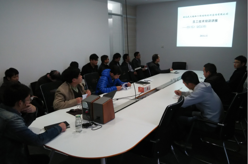 2016年11月21日,由何英明教授主持的湖北武大珞珈工程结构检测咨询有限公司第二期技术培训在巨成大厦15楼会议室举行。