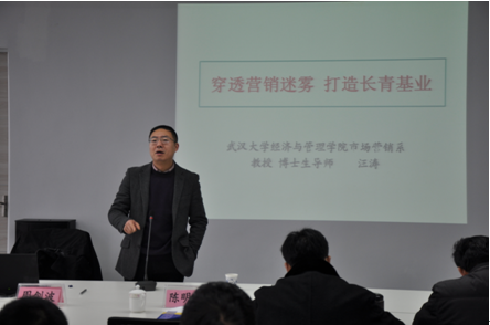随后,公司特请来武汉大学珞珈学者特聘教授、博士生导师汪涛教授给全体员工进行了题为《穿透市场迷雾 打造长青基业》的市场营销知识讲座。