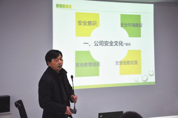 接着安全总监梁益喜就公司安全文化;安全组织体系;安全政策;安全生产执行力;传递突发事件应急响应与事故事件报告五个要点做了《全面推进巨成公司全员参与安全管理》的报告。