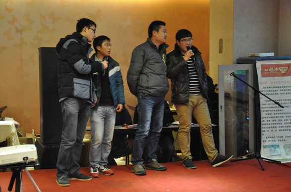 技术部刘虎、梁琰、徐永鑫小合唱《光阴的故事》和销售部何永祥的《十年》勾起巨成人对奋斗打拼的15年光阴的回顾;
