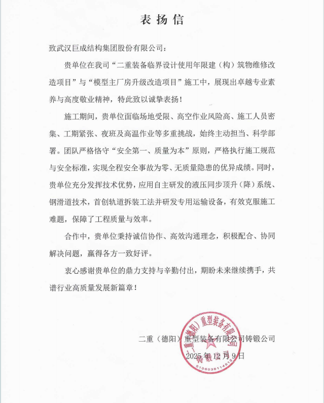 2025年葛洲坝荆门水泥有限公司 表扬信